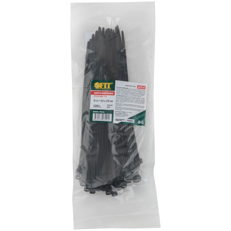 Хомуты нейлоновые для проводов, черные 100 шт., 4,8х200 мм
