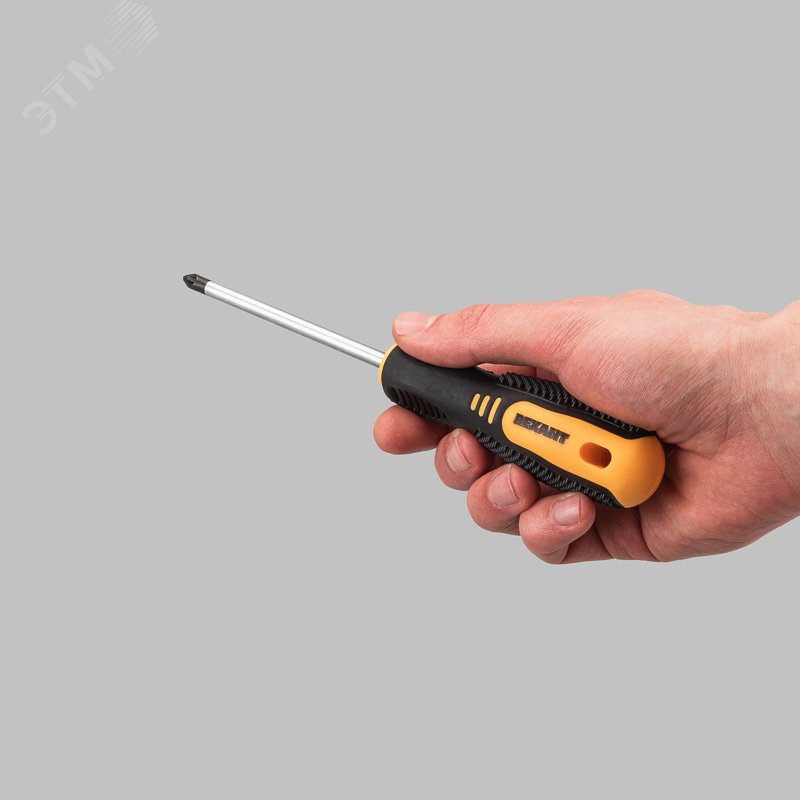 - Преимущества:Стержень выполнен из хромованадиевой стали и устойчив к коррозии|Оксидированный намагниченный наконечник надежно удерживает крепеж|Эргономичная двухкомпонентная рукоятка предотвращает скольжение в ладони|В основании предусмотрено отверстие для подвеса