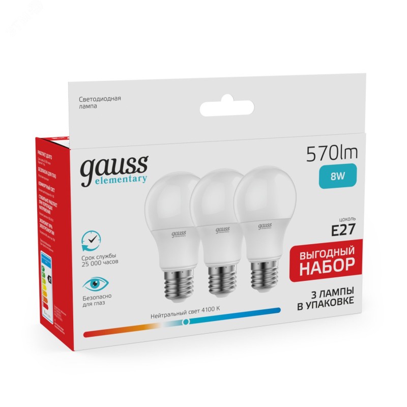 - Комплектация:лампа - 3 шт.|паспорт - 1 шт.|упаковка - 1 шт.