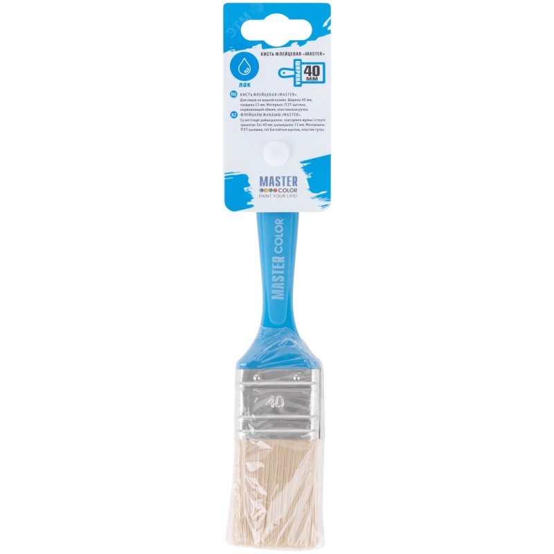Кисть флейцевая, толщ. 13 мм, ПЭТ-щетина, нерж. обжим, пласт. ручка, ширина 40 мм