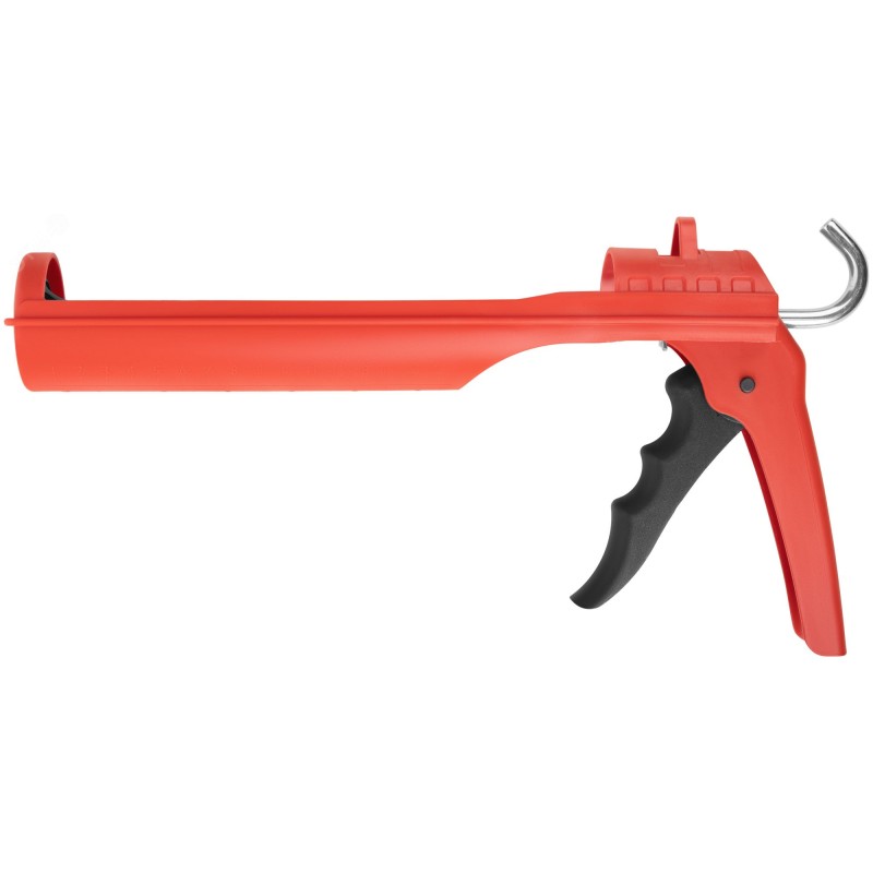 Предназначен для выдавливания герметика из стандартной тубы 310 мл. Полукорпусной. Противокальная система препятствует выделению излишков составов. Усиление фибергласом повышает прочность и износостойкость. Малый вес пистолета для снижения утомляемости. Цинковое антикоррозийное покрытие штока. Материал - рукоятка из полиамида, армированного фибергласом, корпус из полипропилена, армированного фибергласом, шток из инструментальной стали.
