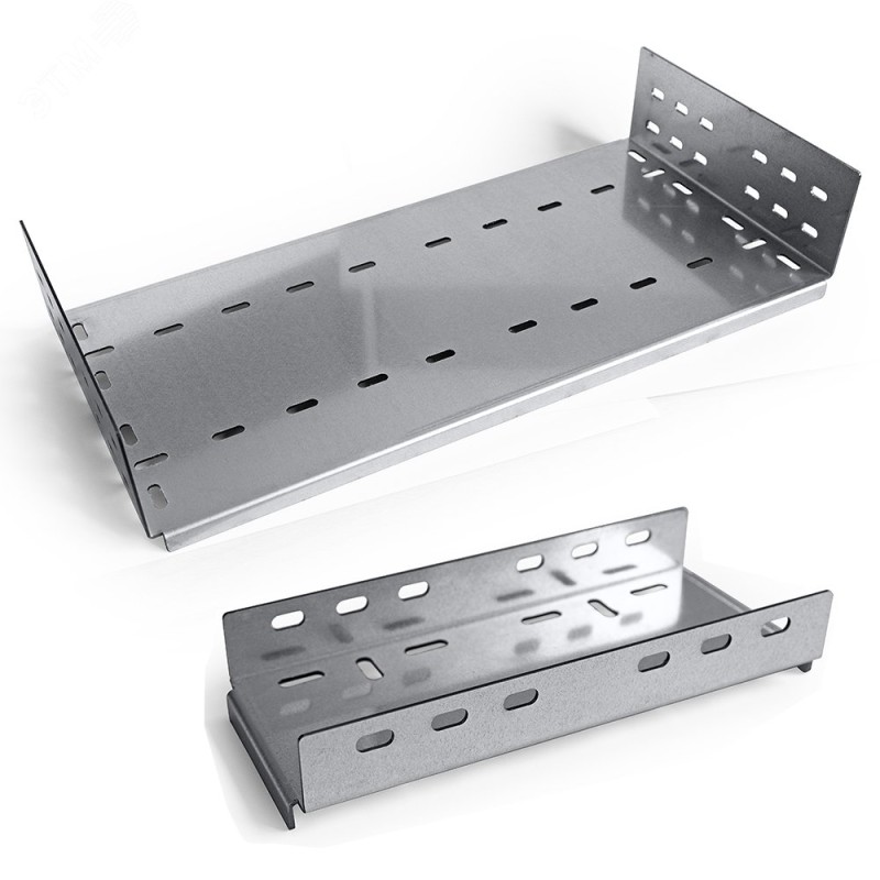 Соединительные пластины Профи предназначены для скрепления (совмещения) двух отрезков металлических лотков соответствующей серии. На основании пластины предусмотрены ребра жесткости для увеличения прочности и предотвращения поперечного прогиба в местах соединения лотков между собой. На соединительных пластинах выполнена перфорация для установки крепежа. На боковой стороне перфорация позволяет фиксировать лотки в 4-х либо в 8-ми точках крепления. Для дополнительной фиксации предусмотрена перфорация по основанию пластины.