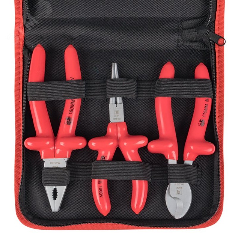 Набор диэлектрического инструмента предназначен для выполнения большинства задач, стоящих как перед профессиональным электромонтажником, так и перед домашним мастером, а также наилучшее решение для компактного хранения инструмента и его удобной переноски – мягкий пенал, отшитый из современных синтетических водо- и грязеотталкивающих тканей с мягкой подкладкой. Для каждого предмета предусмотрена своя ячейка – инструмент не потеряется после работы. Наборы диэлектрического инструмента предназначены для проведения электромонтажных работ в электроустановках напряжением до 1000 В переменного тока промышленной частоты. Наборы содержат ручной диэлектрический инструмент различного назначения. Каждый инструмент прошел индивидуальное тестирование воздействием напряжения 1О кВ в соответствии с требованиями МЭК 60900 -2004.
