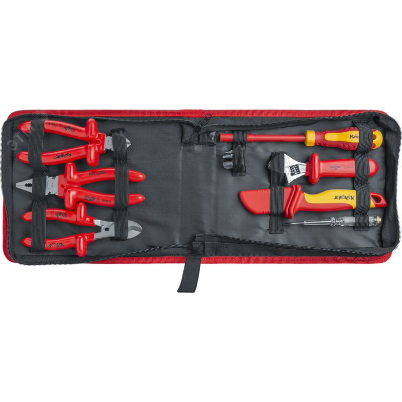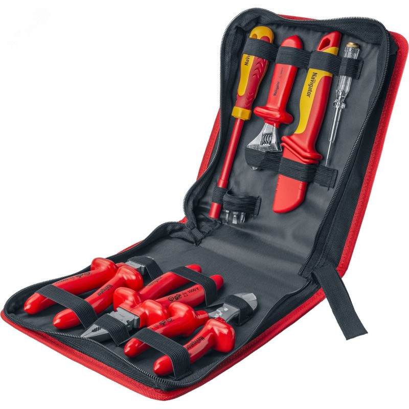 Набор диэлектрического инструмента Navigator NHT-Ind06-H12 предназначен для проведения широкого спектра профессиональных электротехнических и электромонтажных работ в установках с напряжением до 1000 В.