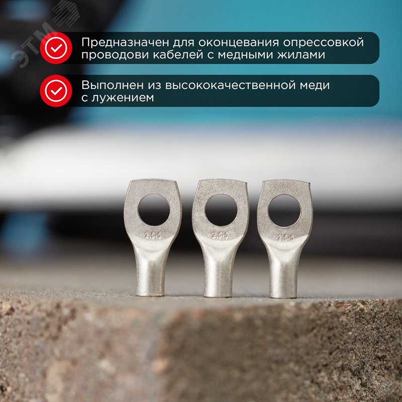 Наконечник кабельный, медный, луженый предназначен для оконцевания опрессовкой проводов и кабелей с медными жилами. Изготовлен из электротехнической меди марки М2. Покрытие - электролитическое лужение. Состав защитного покрытия - Олово-висмут (Sn-Bi). Изготавливается по ГОСТ 7386-80. Наконечник луженый ТМЛ применяется в агрессивной среде, что обеспечивает защиту от разрушения основного материала. Структура обозначения - Т - Труба - полуфабрикат, из которого изготовлен наконечник. М - Медь - материал, из которого изготовлен наконечник. Л - Луженый - покрытие. 25 - номинальное сечение наконечника, мм.кв. 8 - диаметр контактного стержня, мм. 8 - внутренний диаметр хвостовика, мм.