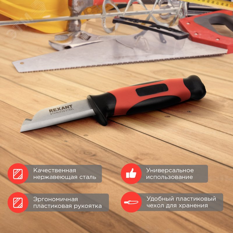 - Преимущества:Мощная эргономичная двухкомпонентная рукоятка для удобства в работе|Прецизионная заточка обеспечивает чистоту и точность реза|Лезвие изготовлено из нержавеющей стали|Пластиковые ножны для удобного хранения и транспортировки