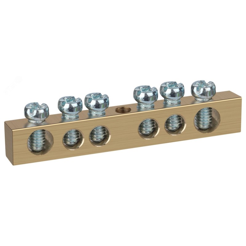 - Дополнительная информация:Материал латунь Л56|Сечение 6х9 мм|Номинальный ток In 100 А|Диаметр отверстия для присоединения входящих проводников ? 6 мм|Диаметр отверстия для присоединения отходящих проводников ? 4 мм