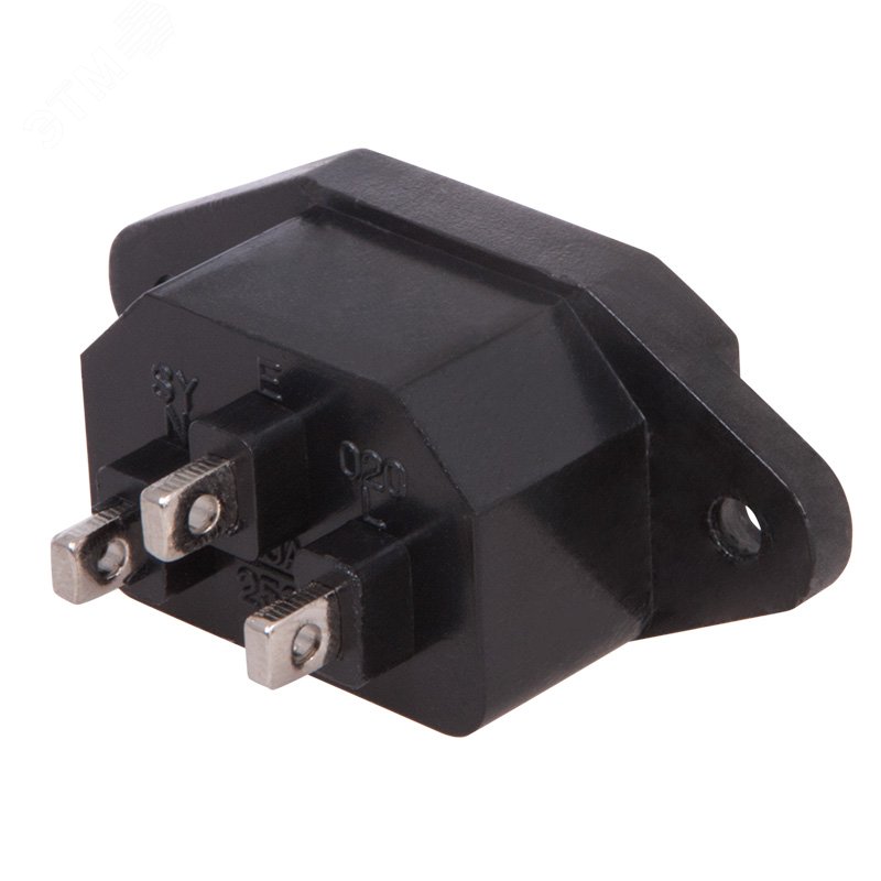 Cетевое гнездо на корпус используется для подключения оборудования к сети переменного тока. Штекер крепится к корпусу с помощью боковых винтов. Имеет три контакта – ноль, фаза и заземление, к которым с передней стороны подсоединяется сетевой шнур, а с задней — подключается оборудование.