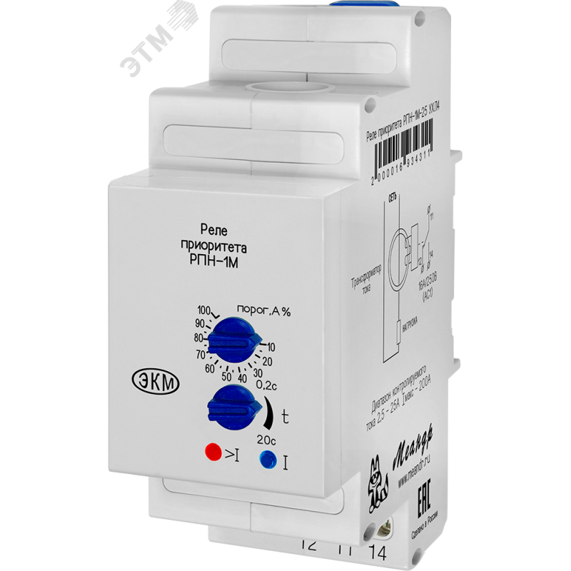Реле контроля тока предназначено для контроля величины суммарно потребляемого тока в цепи потребителей и отключения неприоритетной нагрузки, при выходе его значения за установленный верхний порог срабатывания. Устройство функционирует без питания. Устройство возможно использовать в качестве реле максимального тока, для защиты силовых машин от перегрузок и коротких замыканий.