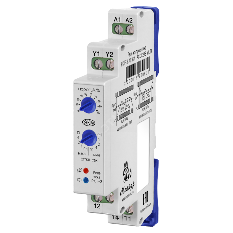 Реле контроля тока предназначено для выдачи управляющего сигнала при обнаружении выхода значения тока выше или ниже установленного значения в однофазных сетях. Реле контроля тока служит для контроля перегрузок, потребления и диагностики удаленного оборудования (замыкание, пониженное или повышенное потребление тока). Реле выпускаются в унифицированном пластмассовом корпусе с передним присоединением проводов питания и коммутируемых электрических цепей. Крепление осуществляется на монтажную рейку-DIN шириной 35мм (ГОСТ Р МЭК 60715-2003) или на ровную поверхность. Для установки реле на ровную поверхность, фиксаторы замков необходимо переставить в крайние отверстия. Конструкция клемм обеспечивает надежный зажим проводов сечением до 2.5мм2.