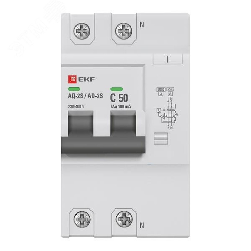 диф. автомат 2Р S 50А 100мА тип АС х-ка C эл. 6кА АД-2 EKF