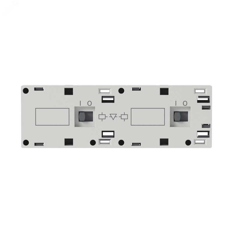 Фронтальная механическая блокировка DMCMI предназначена для реверсирования миниконтакторов. Блокировка предотвращает одновременное включение контакторов прямого и обратного хода. Модули вспомогательных контактов, ограничители перенапряжений и таймеры могут использоваться совместно с механической блокировкой.
