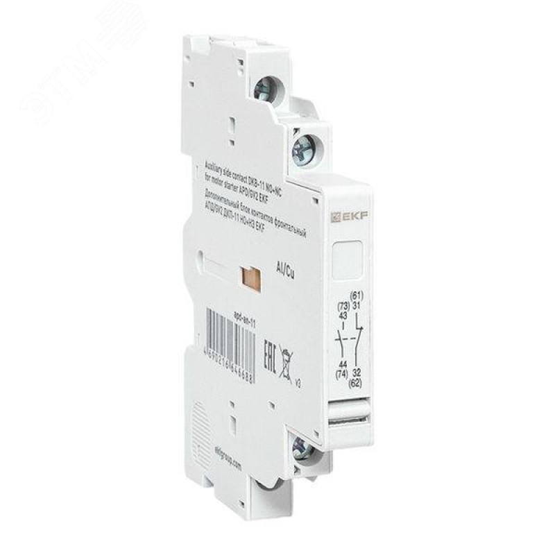 Дополнительный боковой блок контактов для автоматов пуска двигателя - Предназначены для применения в сетях диспетчеризации и автоматизации, различных цепях управления. Также в ассортименте EKF есть много других аксессуаров для АПД и GV2P – соединительный блок для подключения, расцепители независимый и минимального напряжения, выносная рукоятка на дверь щита, шинки-гребёнки для удобного монтажа.