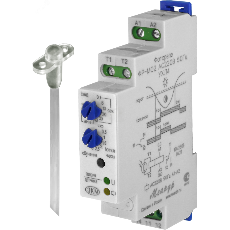 Фотореле предназначено для контроля уровня освещенности выносным фотодатчиком и автоматического, своевременного включения и отключения нагрузки, в соответствии с установленным порогом срабатывания. Устройство используется для управления системами освещения улиц, витрин, залов и т.п. Реле выпускаются в унифицированном пластмассовом корпусе с передним присоединением проводов питания и коммутируемых электрических цепей. Крепление осуществляется на монтажную шину DIN шириной 35мм или на ровную поверхность. Для установки реле на ровную поверхность, фиксаторы замков необходимо переставить в крайние отверстия, расположенные на тыльной стороне корпуса. Конструкция клемм обеспечивает надежный зажим проводов сечением до 2,5 мм2.