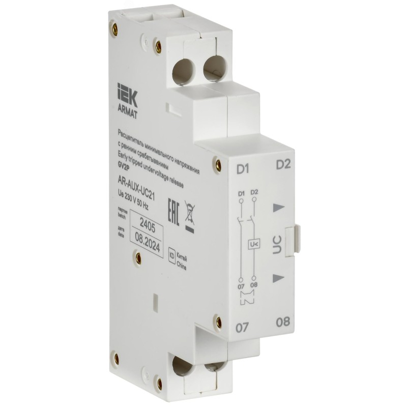 - Преимущества:Безвинтовое крепление к автоматическим выключателям защиты двигателя типа GV2P серии ARMAT|Наличие контактов раннего срабатывания|Высокая скорость срабатывания