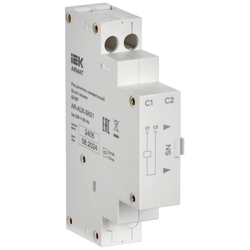 - Преимущества:Безвинтовое крепление к автоматическим выключателям защиты двигателя типа GV2P серии ARMAT|Гарантированное дистанционное отключение выключателя
