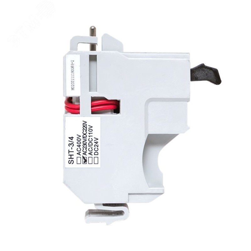 Независимый расцепитель SHT EKF AVERES. Предназначен для дистанционного отключения автоматического выключателя. Представляет собой электромагнит, который, воздействуя на механизм сброса, вызывает отключение выключателя при подаче напряжения от внешнего источника. После осуществления его дистанционного отключения включение выключателя производится вручную или дистанционно при помощи электропривода.