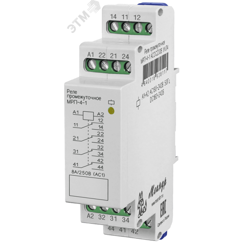 Промежуточное реле предназначено для дистанционного включения нагрузки, гальванической развязки силовых цепей и цепей управления, увеличения количества переключаемых групп контактов. Реле выпускаются в унифицированном пластмассовом корпусе с передним присоединением проводов питания и коммутируемых электрических цепей. Крепление осуществляется на монтажную рейку-DIN шириной 35 мм (ГОСТ Р МЭК 60715-2003) или на ровную поверхность. Для установки реле на ровную поверхность, фиксаторы замков необходимо переставить в крайние отверстия, расположенные на тыльной стороне корпуса. Конструкция клемм обеспечивает надежный зажим проводов сечением до 2.5 мм2.