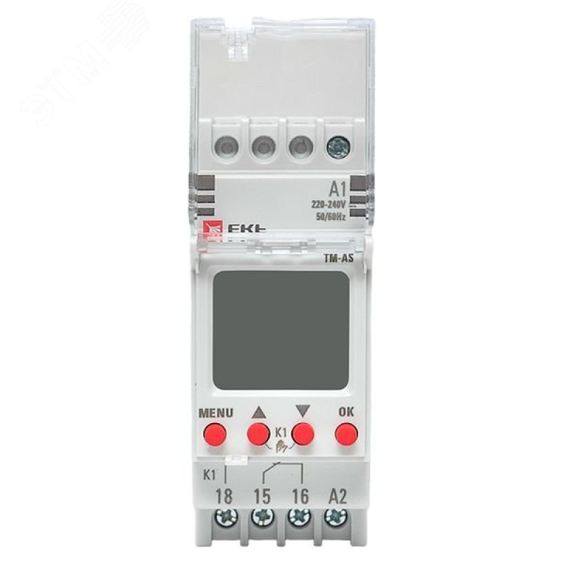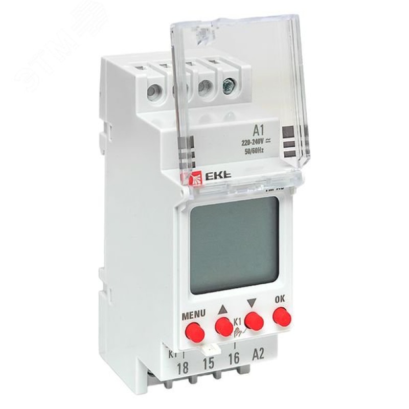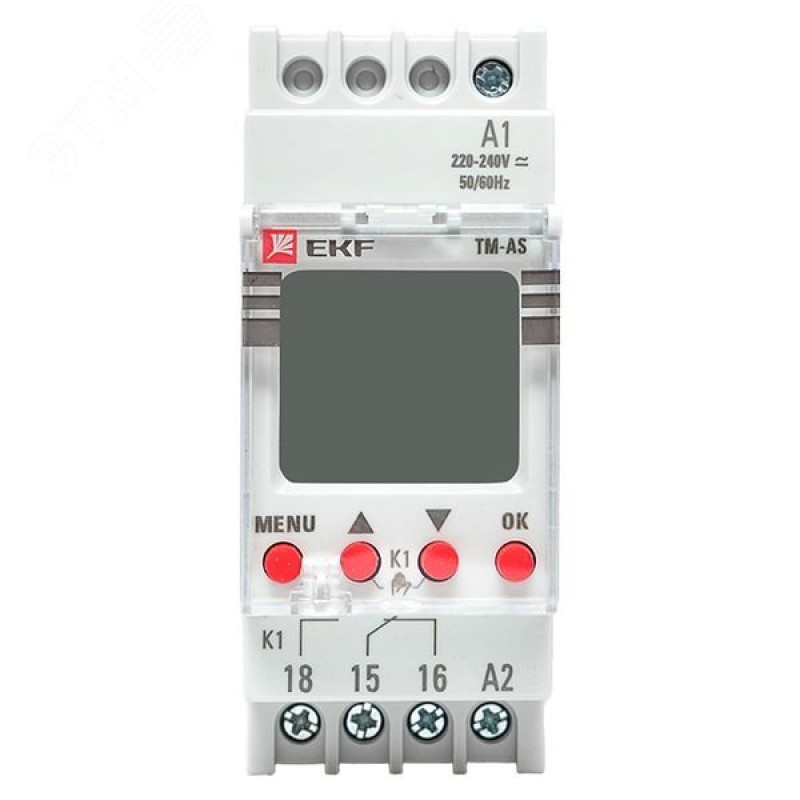 Таймер астрономический TM-AS EKF PROxima представляют собой реле с двумя независимыми группами контактов, момент срабатывания которого (включение/отключение) происходит по времени заката и восхода солнца на основании координат местоположения. Таймер имеет возможность срабатывания (80 программ) по заданному времени и дню недели. Таймер имеет в составе часы, что позволяет отслеживать текущее время. Изделие соответствует ГОСТ IEC 60947-1-2014, ГОСТ IEC 60947-5-1-2014. Преимущества: 1. Автоматический расчёт времени заката и рассвета 2. Два независимых канала управления 3. Задание до 80 программ 4. Информативный дисплей 5. Часы реального времени 6. Защитная крышка дисплея и кнопок с возможностью опломбировки 7. Возможность регулировки предустановки интервала времени 8. Возможность ручного управления реле по каждому канала 9. Два встроенных перекидных реле С/О с номинальным током 16А 10. Напряжение питания 24-264 V АС/DC