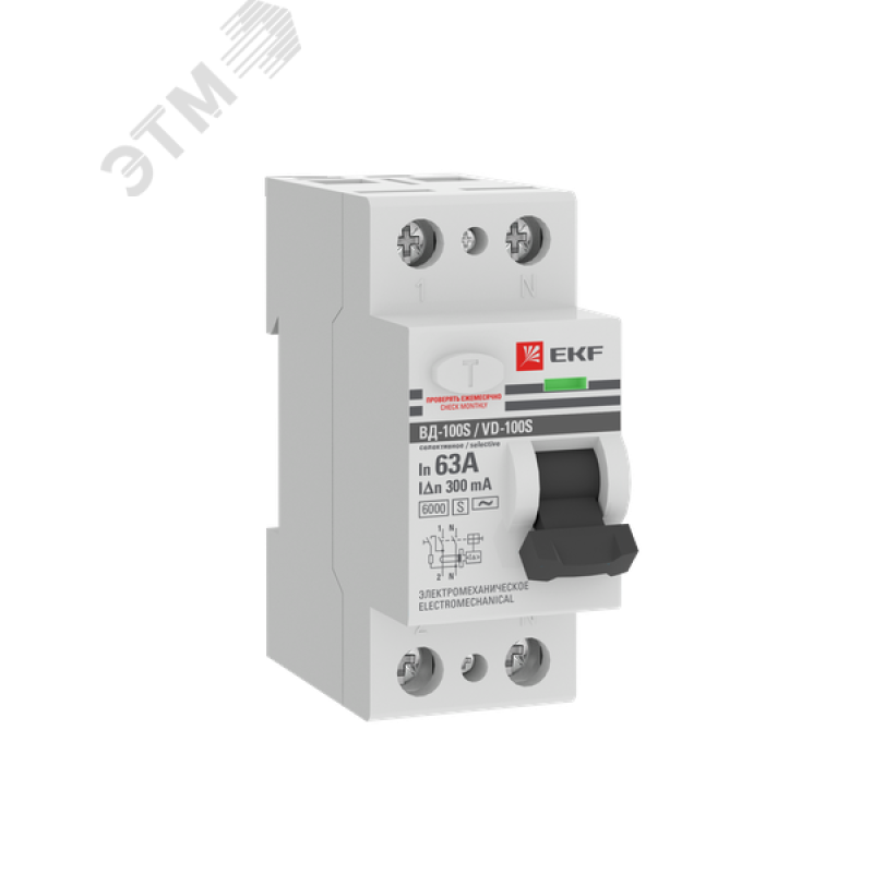 - Комплектация:выключатель дифференциального тока ВД-100 2P (S) 63А 300мА тип АС электромеханический 6кА селективный PROXIMA EKF