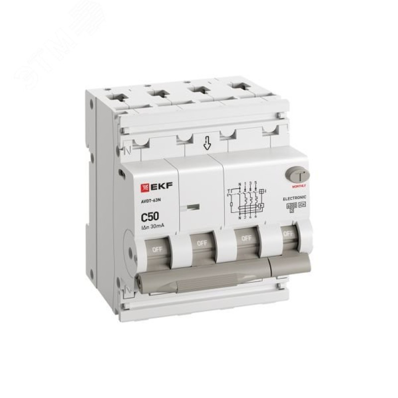 - Комплектация:АВДТ АВДТ-63N 3P+N 50А х-ка C 30мА тип A эл. 6кА PROXIMA EKF