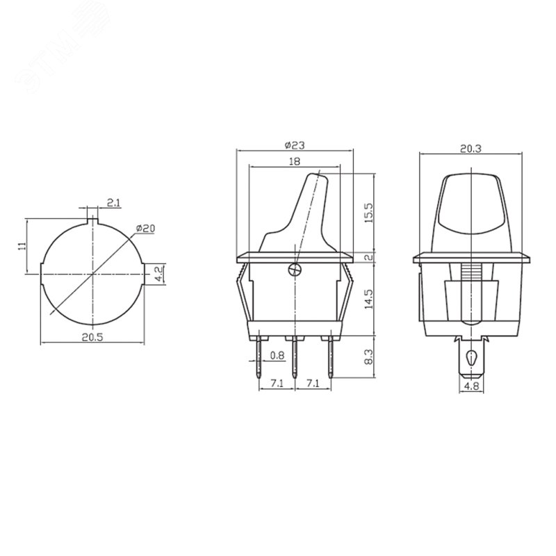 Выключатель клавишный круглый 12V 16А (3с) ON-OFF синий с подсветкой предназначен для коммутации электрических цепей напряжением 12В. Клавишные (Рокерные) выключатели применяются в качестве комплектующих изделий различного электрооборудования (аудио-оборудовании, блоках питания, электроустановках на различных производствах, автомобилях, и многих других местах). Такой переключатель имеет два положения и специфическую форму клавиша-тумблер. Принцип действия основан на перемещении клавиши в одну из позиций. Для переключения в нужное положение требуется приложить некоторые усилия на клавишу. Монтаж осуществляется без применения винтов на плоских панелях толщиной от 0.8мм до 3мм. Подключение контактов осуществляется плоской клеммой, либо с помощью пайки.