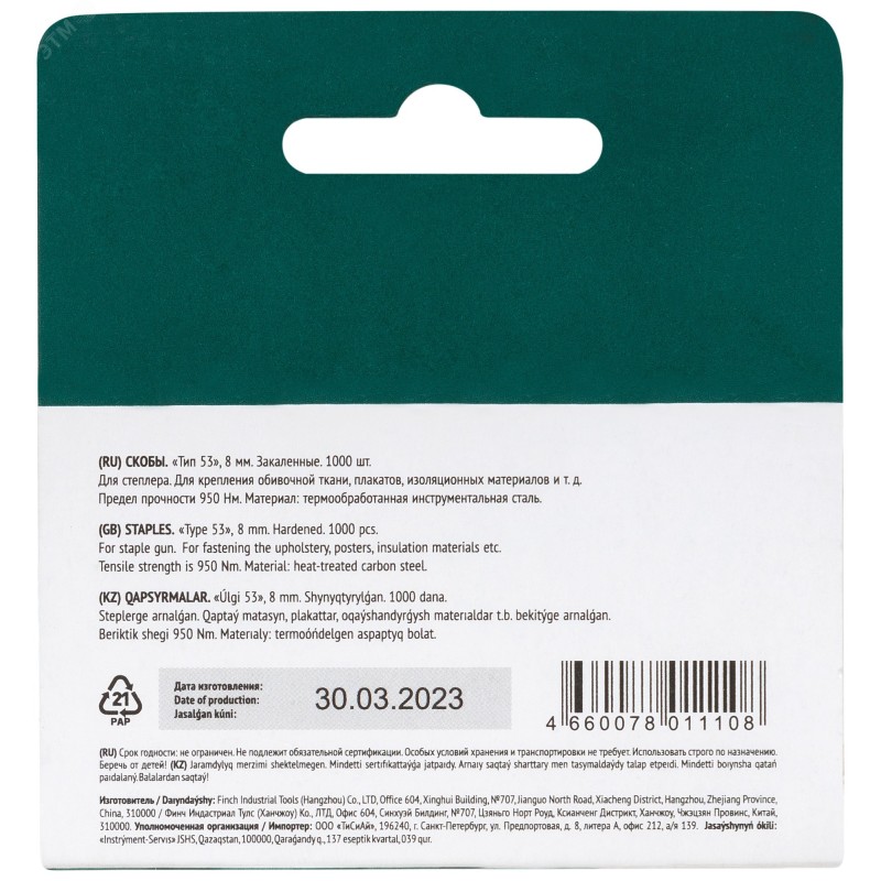 - Преимущества:Закалка скоб существенно повышает их прочность|Гальваническое покрытие предотвращает коррозию|1000 штук в комлпекте дают возможность выполнения большого объема работ