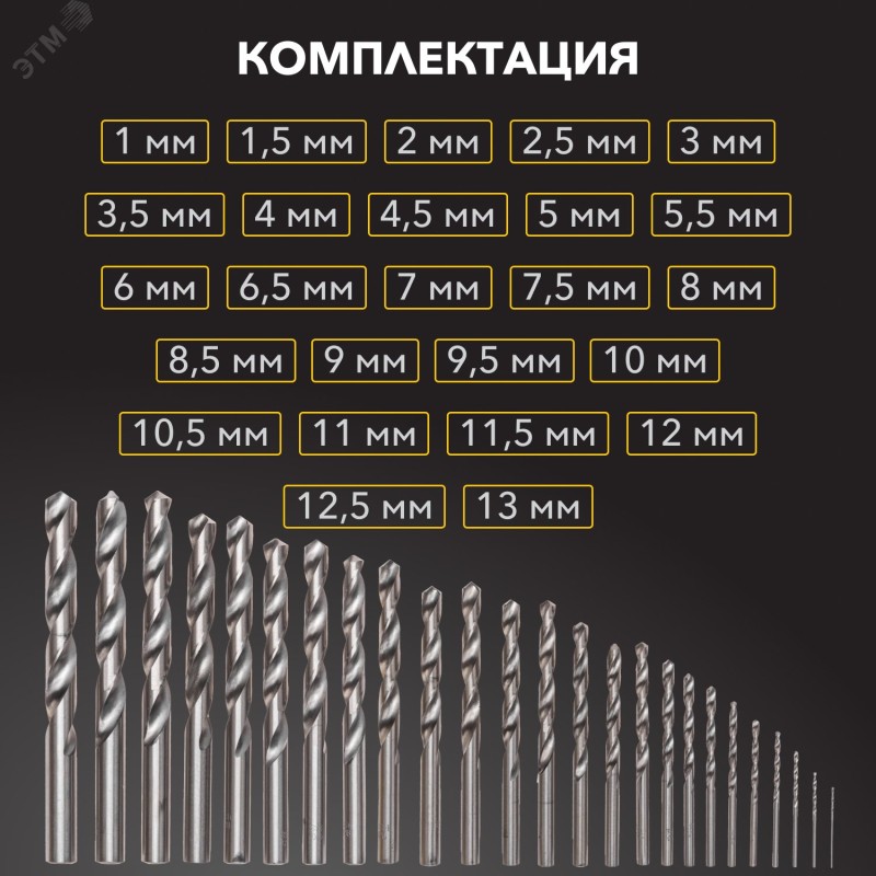 - Дополнительная информация:сверла в комплекте идут с шагом 0,5 мм