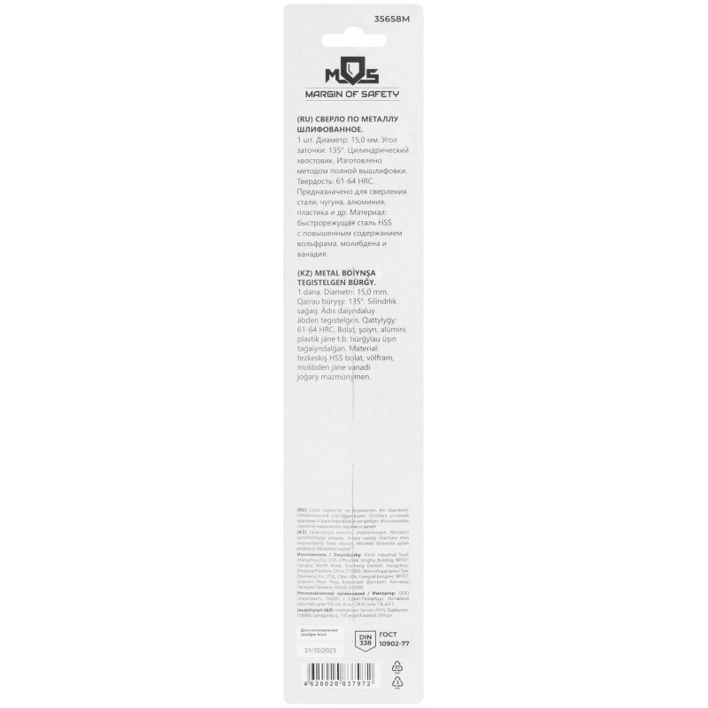 - Тип изделия:сверло по металлу