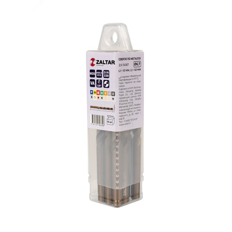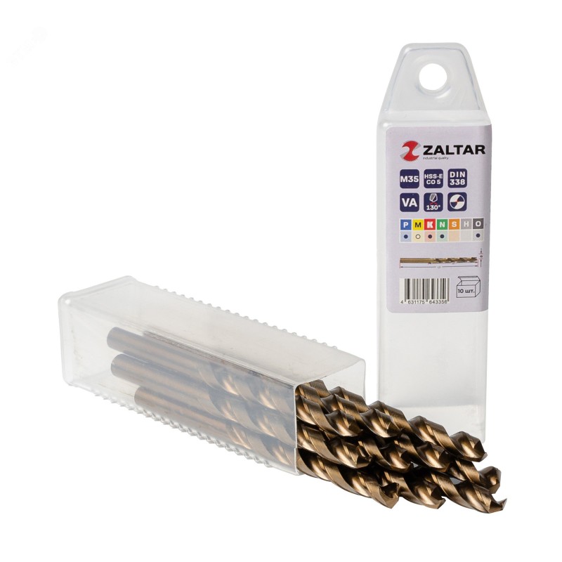 - Дополнительная информация:количество в наборе, шт - 10|технический стандарт - DIN 338|материал - HSS-E Co5|тип сверла - VA|диаметр сверла, мм - 6.7|рабочая длина, мм - 63|длина, мм - 101|глубина реза - 5xD|угол заточки, градусов - 130|угол спирали, градусов - 36|тип хвостовика - цилиндрический|тип заточки - DIN1412-C - крестообразная подточка перемычки
