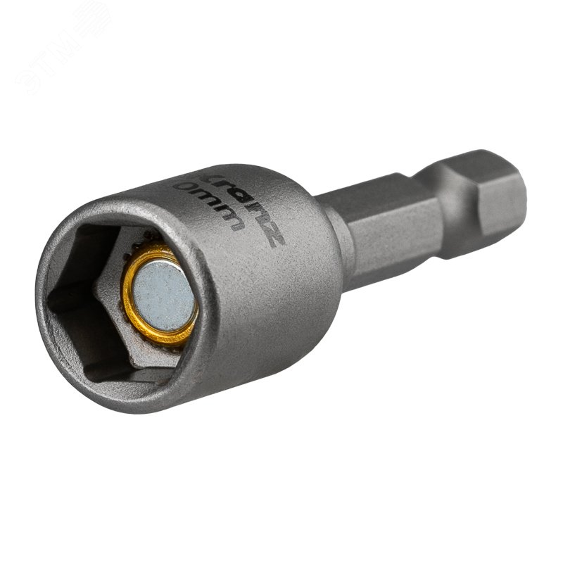 Ключ-насадка предназначен для работы с кровельными саморезами, гайками и винтами с внешним шестигранником. Используется с шуруповертом, дрелью или с отверткой-адаптером. Изготовлен из высококачественной стали CrV, благодаря чему устойчив к статическим и динамическим нагрузкам и износу. Внутрь головки ключа впрессован магнит, который надежно удерживает крепеж. Шестигранный хвостовик обеспечивает надежное закрепление ключа в патроне инструмента и не дает проворачиваться ключу.