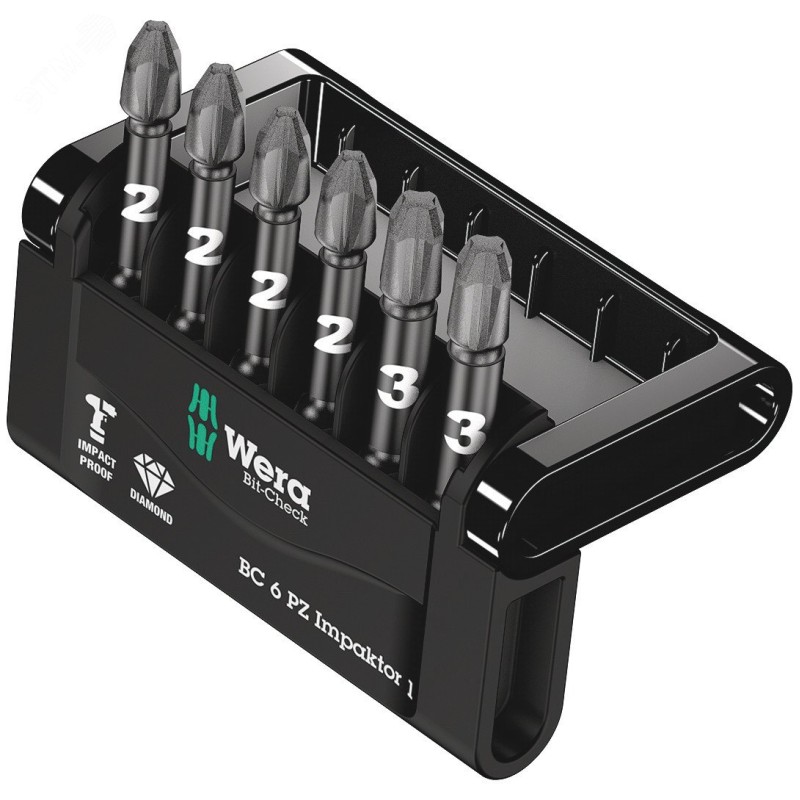 - Преимущества:Многокомпонентный футляр Bit-Check с возможностью вертикального размещения|Технология Impaktor для увеличенного срока службы|Особенно подходит для использования с ударными винтовёртами|Алмазное покрытие для надёжной посадки в винте|С индикатором Take it easy - Цветовая маркировка профиля и гравировка размера