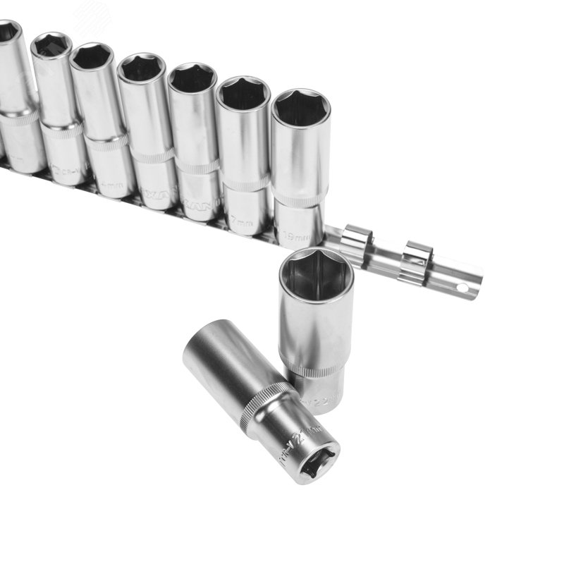 - Дополнительная информация:размеры головок в комплекте – 10, 12, 13, 14, 15, 16, 17, 19, 21, 22 мм