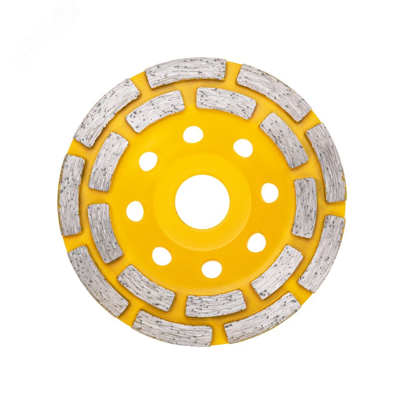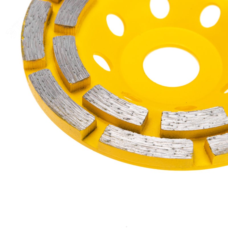 - Преимущества:Высокий ресурс изделия обеспечит длительную эксплуатацию|Универсальная сфера использования|Повышенная теплоотдача защищает чашка от перегрева|Наличие алмазов ускоряет процесс шлифовки и повышает производительность|2 алмазных ряда позволяют выполнять работу в 2 раза быстрее