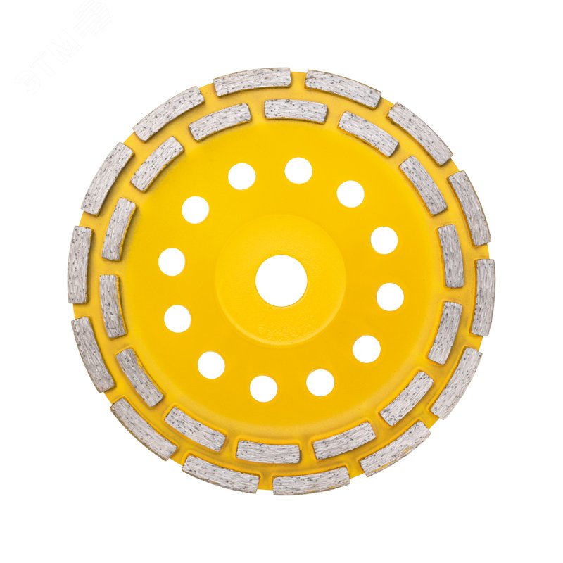 - Преимущества:Высокий ресурс изделия обеспечит длительную эксплуатацию|Универсальная сфера использования|Повышенная теплоотдача защищает чашка от перегрева|Наличие алмазов ускоряет процесс шлифовки и повышает производительность|2 алмазных ряда позволяют выполнять работу в 2 раза быстрее