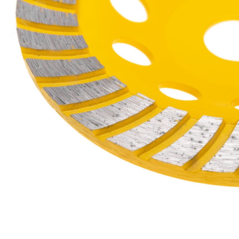 - Преимущества:Высокий ресурс изделия обеспечит длительную эксплуатацию|Универсальная сфера использования|Повышенная теплоотдача защищает чашка от перегрева|Турбированная форма алмазов ускоряет процесс шлифовки|Не требует водяного охлаждения при выполнении работ