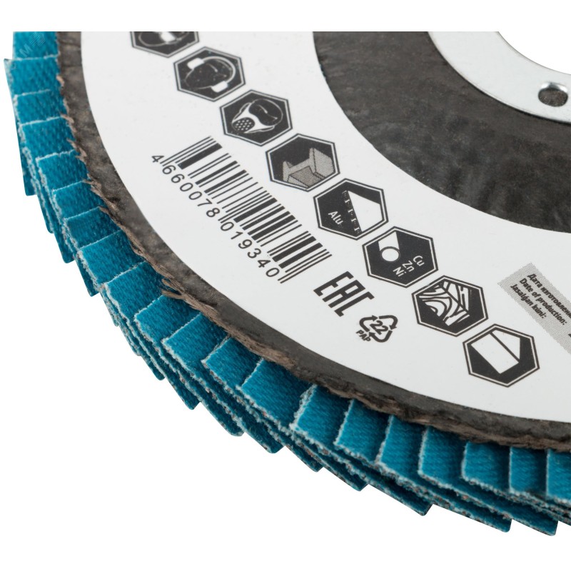 - Преимущества:абразивный слой из циркония обладает повышенной износостойкостью и высокой скоростью выполнения работ|80 лепестков способствуют высокой износостойкости|повышенная термостойкость предотвращает прижоги и появление окалины|хлопчатобумажная основа лепестков обладает высокой прочностью и эластичностью|прочный корпус из фибергласа обеспечивает безопасность выполнения работ