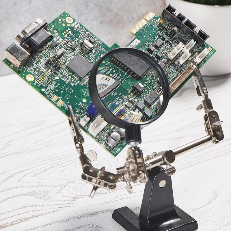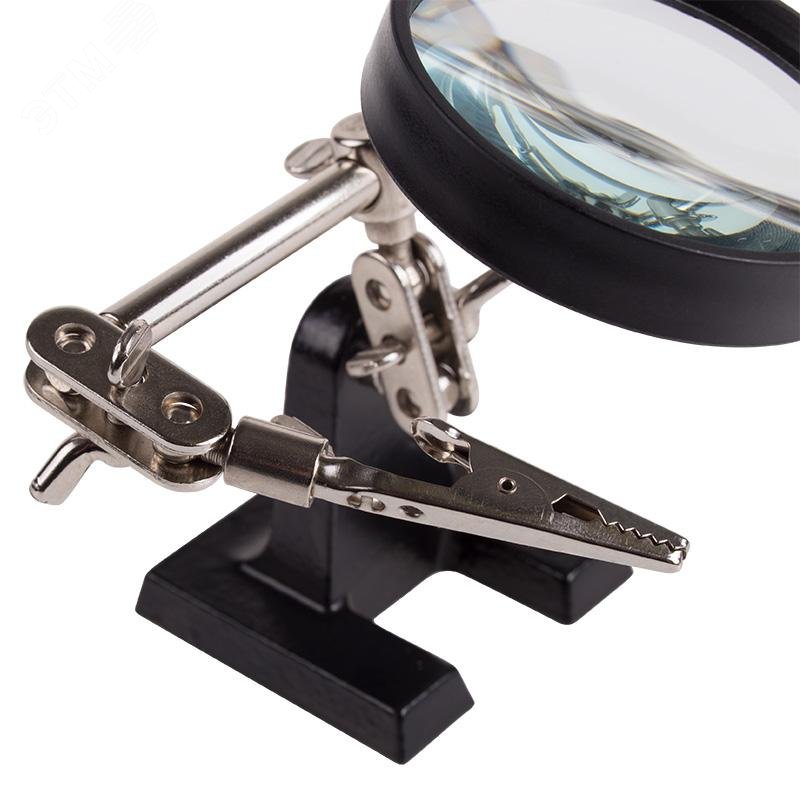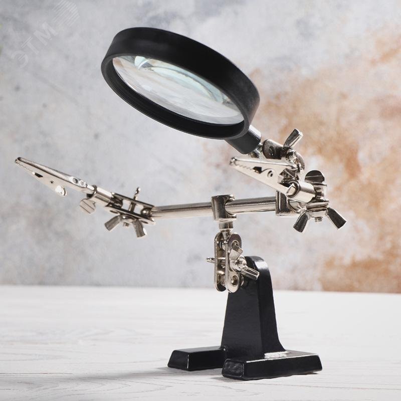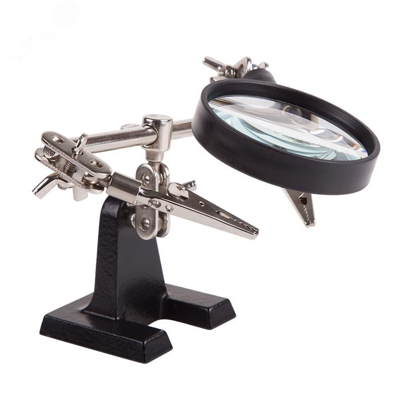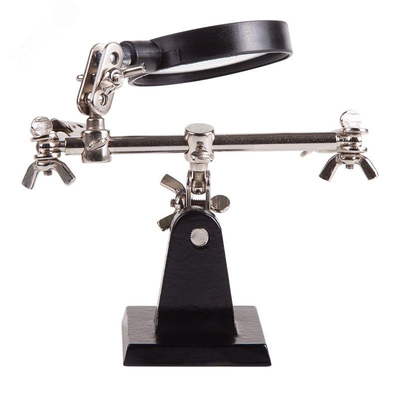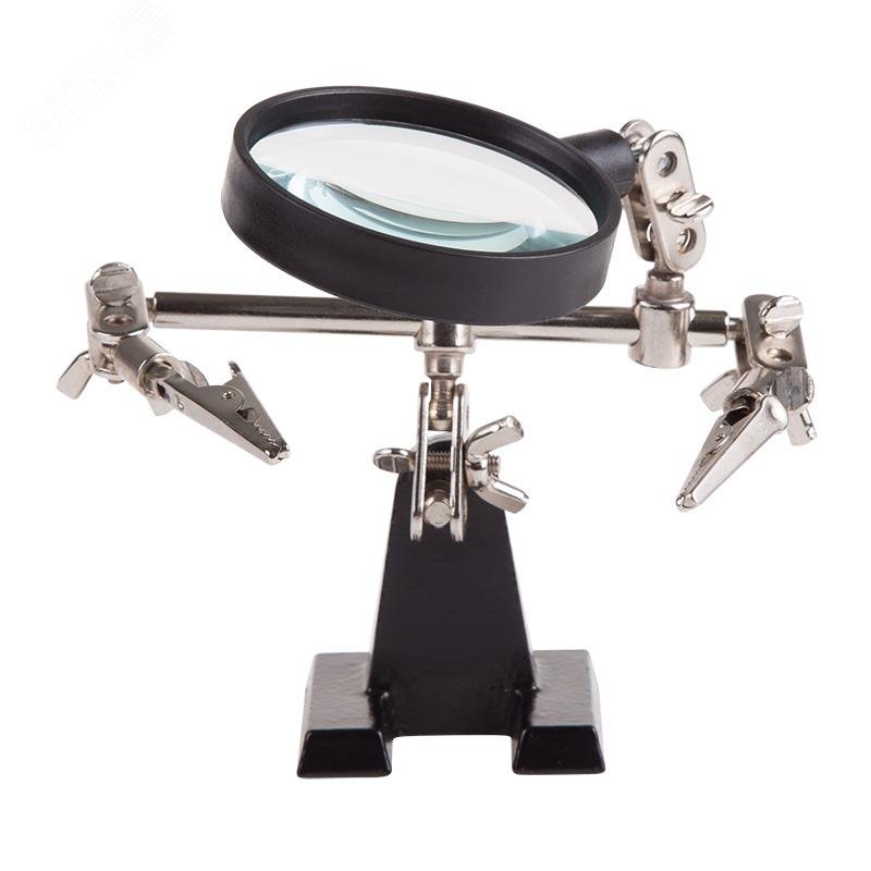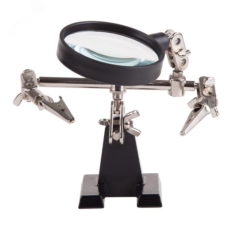 - Преимущества:Чугунное основание устойчиво на горизонтальных поверхностях|Зажимы крокодил подвижны во всех плоскостях|Положение лупы можно регулировать и подстраивать|Лупа позволит рассмотреть даже самые мелкие детали