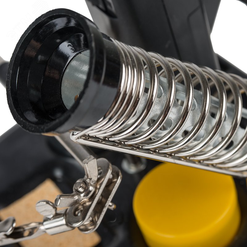 держатель|канифоль в баночке|металлический шарик из медной стружки|губка для очистки жала|руководство по эксплуатации|упаковка