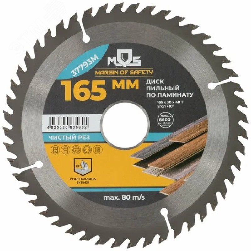 Диск пильный для циркулярных пил по ламинату 165x30x48T + кольцо 30/20 мм