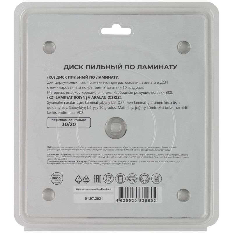 По ламинату. Зубья из твердого сплава ВК8 (карбид вольфрама). Корпус из легированной высокоуглеродистой стали. Угол атаки +10 градусов. Упаковка - блистер.