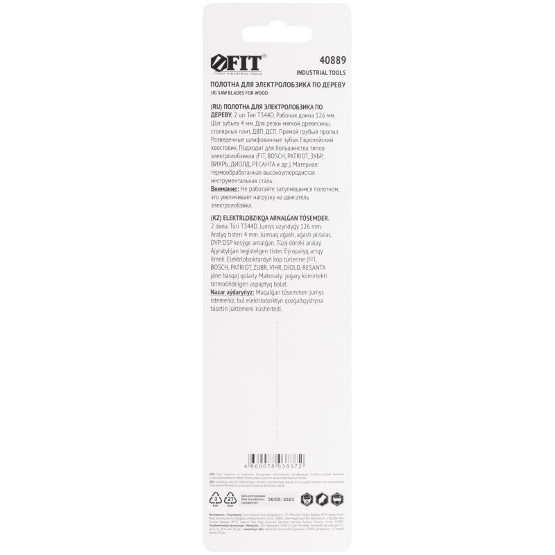 Шаг 4 мм, L общая/рабочая —151/126 мм. T344D. Разведенные шлифованные зубья. Прямой грубый пропил. Длинное полотно. Для резки мягкой древесины, столярных плит, ДВП, ДСП. Толщина реза - 5–100 мм. Материал - высокоуглеродистая инструментальная сталь. Закалка полотна до твердости 50–52 HRC обеспечивает высокую износостойкость. Длинное полотно позволяет пилить материалы толщиной до 100 мм. Шаг зубьев 4 мм (6 TPI) способствует высокой скорости и эффективности реза. Разводка зубьев препятствует заклиниванию полотен в материале. Т-образный хвостовик европейского типа совместим с большинством моделей электролобзиков.