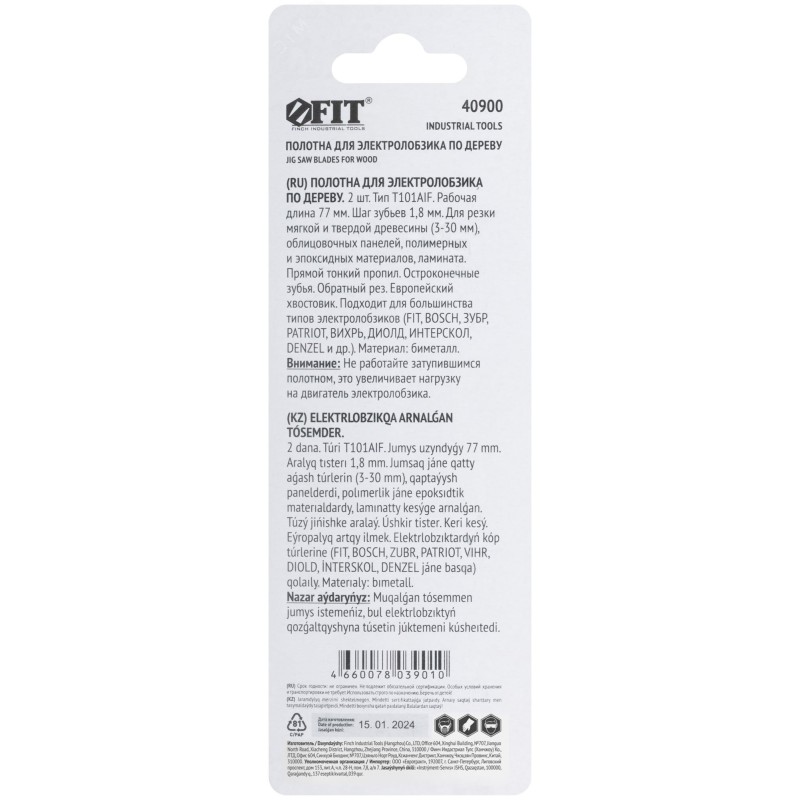 T101AIF. Остроконечные зубья, задний угол заточен. Прямой тонкий пропил. Для резки мягкой и твердой древесины, облицовочных панелей, полимерных и эпоксидных материалов, ламината. Толщина реза – 3-30 мм. Материал – биметалл. Упаковка – блистер.