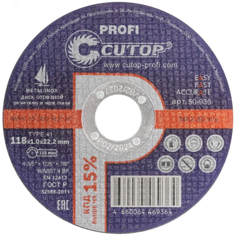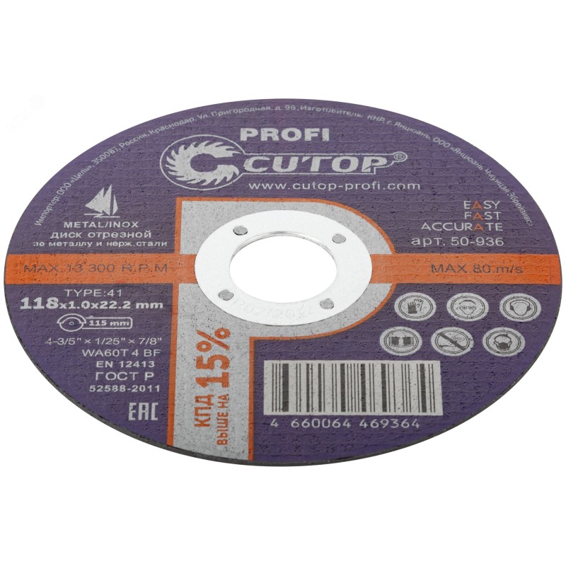 Профессиональный отрезной диск по металлу и нержавеющей стали на основе монокристаллического электрокорунда, который улучшает КПД диска и позволяет увеличить количество резов в несколько раз. Для углошлифовальных машин. Посадочный диаметр 22,2 мм.
