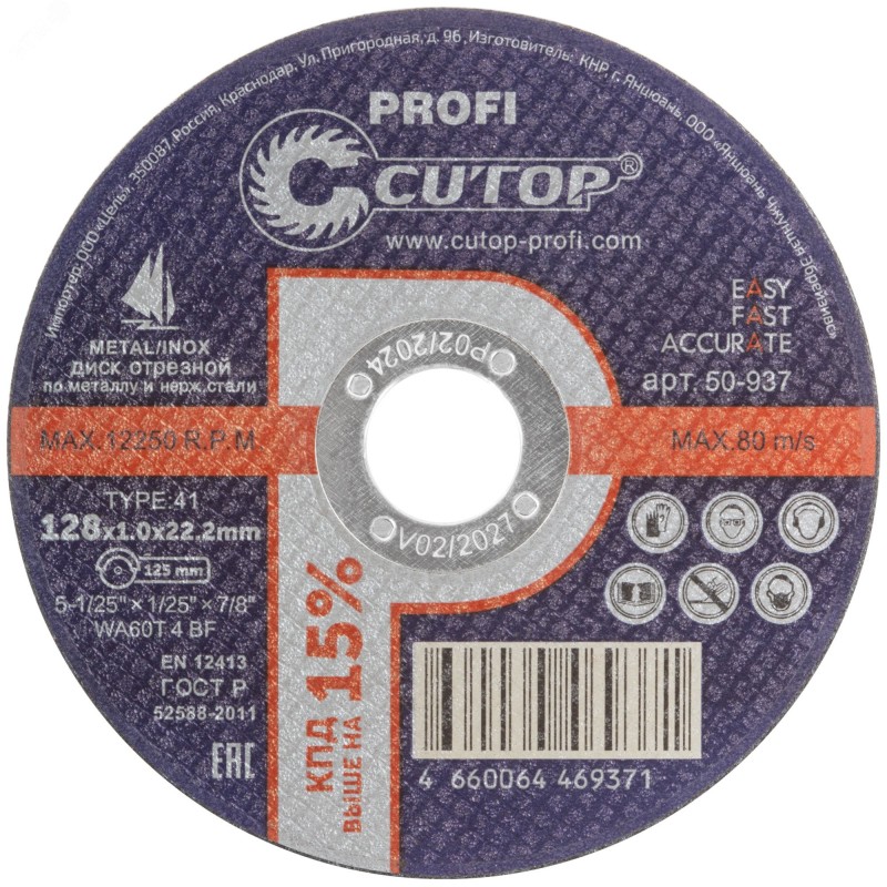 Профессиональный отрезной диск по металлу и нержавеющей стали на основе монокристаллического электрокорунда, который улучшает КПД диска и позволяет увеличить количество резов в несколько раз. Для углошлифовальных машин. Посадочный диаметр 22,2 мм.