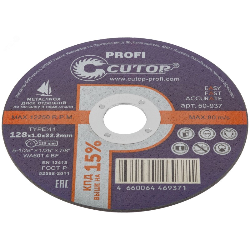 Профессиональный диск отрезной по металлу и нержавеющей стали Profi Т41-128x1,0x22,2 мм