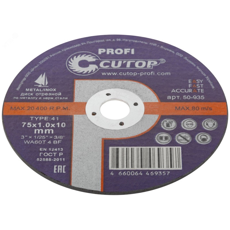 Профессиональный диск отрезной по металлу и нержавеющей стали Profi Т41-75x1,0x10,0 мм