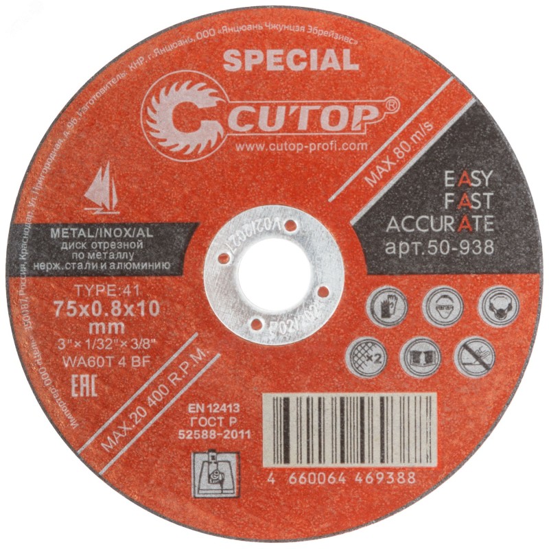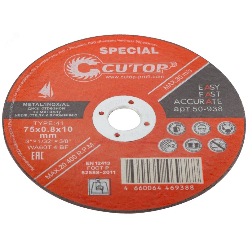 Диск показывает лучший результат при резке металлочерепицы, листового профиля и тонкостенной профильной трубы. Благодаря уникальной технологии армирования стеклотканевой сеткой в четыре слоя для дисков диметром 230 мм и два слоя диаметром 125 мм диск отлично выдерживает значительные нагрузки на изгиб, при своей малой толщине и дает высокие показатели безопасности. Отсутствие вибрации позволяет достичь высокой точности реза. Монокристаллический электрокорунд, входящий в состав диска, увеличивает многократно КПД диска. Для углошлифовальных машин. Посадочный диаметр 22,2 мм.