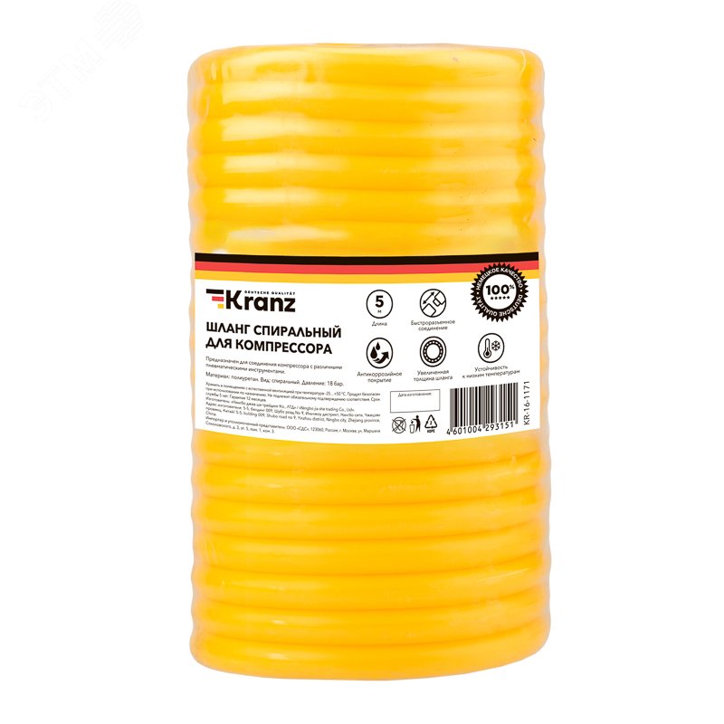 - Преимущества:Ускоренное подключение пневмоинструментов благодаря быстроразъемному соединению|Возможность использования с мощным компрессорным оборудованием благодаря максимальному давлению в 18 бар|Долгий срок службы соединителей за счет антикоррозийного покрытия|Устойчивость к нагрузкам, давлению, механическим воздействиям, истиранию и перекручиванию|Эластичность и устойчивость к низким температурам