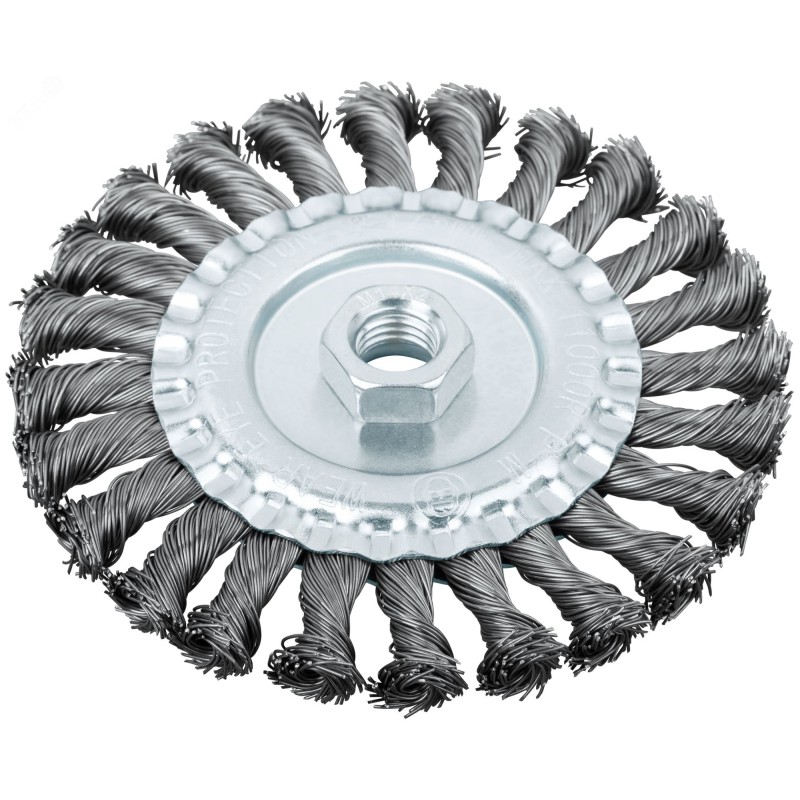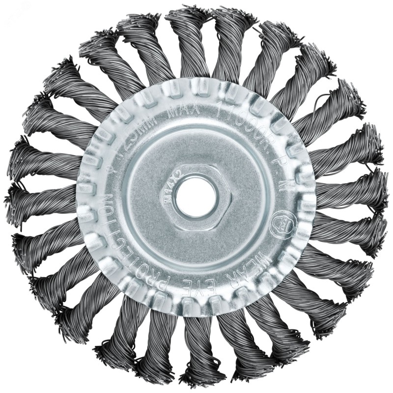 Тип 'Колесо', гайка М14. Для УШМ. Витая стальная проволока. Материал - инструментальная сталь. Упаковка - картонная коробка.